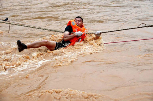我国解放军在抢险前线