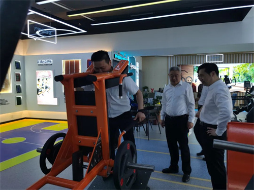 米兰·(milan)中国官方网站体育集团董事长王进华先生向王映海副市长一行领导介绍了近年来企业发展情况,并带领大家参观了米兰·(milan)中国官方网站体育集团济南省体旗舰店,详细介绍了无氧力量、心肺有氧、户外综合、私家健身、老年健身、康体器材六大健身场景区域,王进华先生还亲身示范健身器材的正确使用方法,全场景体验和具有科感的智能互动得到一行领导的充分肯定与认可,并对米兰·(milan)中国官方网站体育集团在体育产业发展中发挥的示范带动作用给予高度评价。