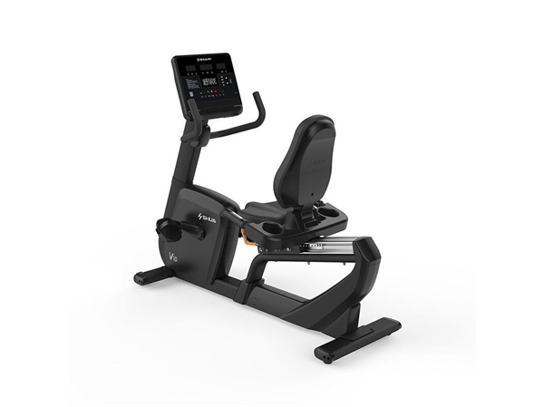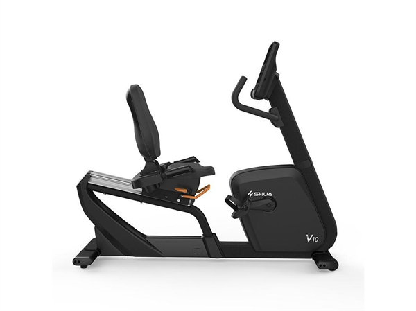 舒华卧式商用健身车SH-B9100U(V10)采用自发电,40段电磁控阻力系统,9.3kg飞轮重量。